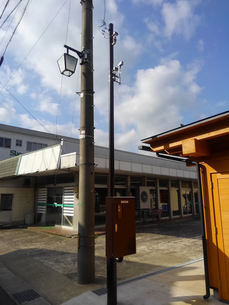街路灯を建てられない場所には、電柱共架式のHS-423を設置
