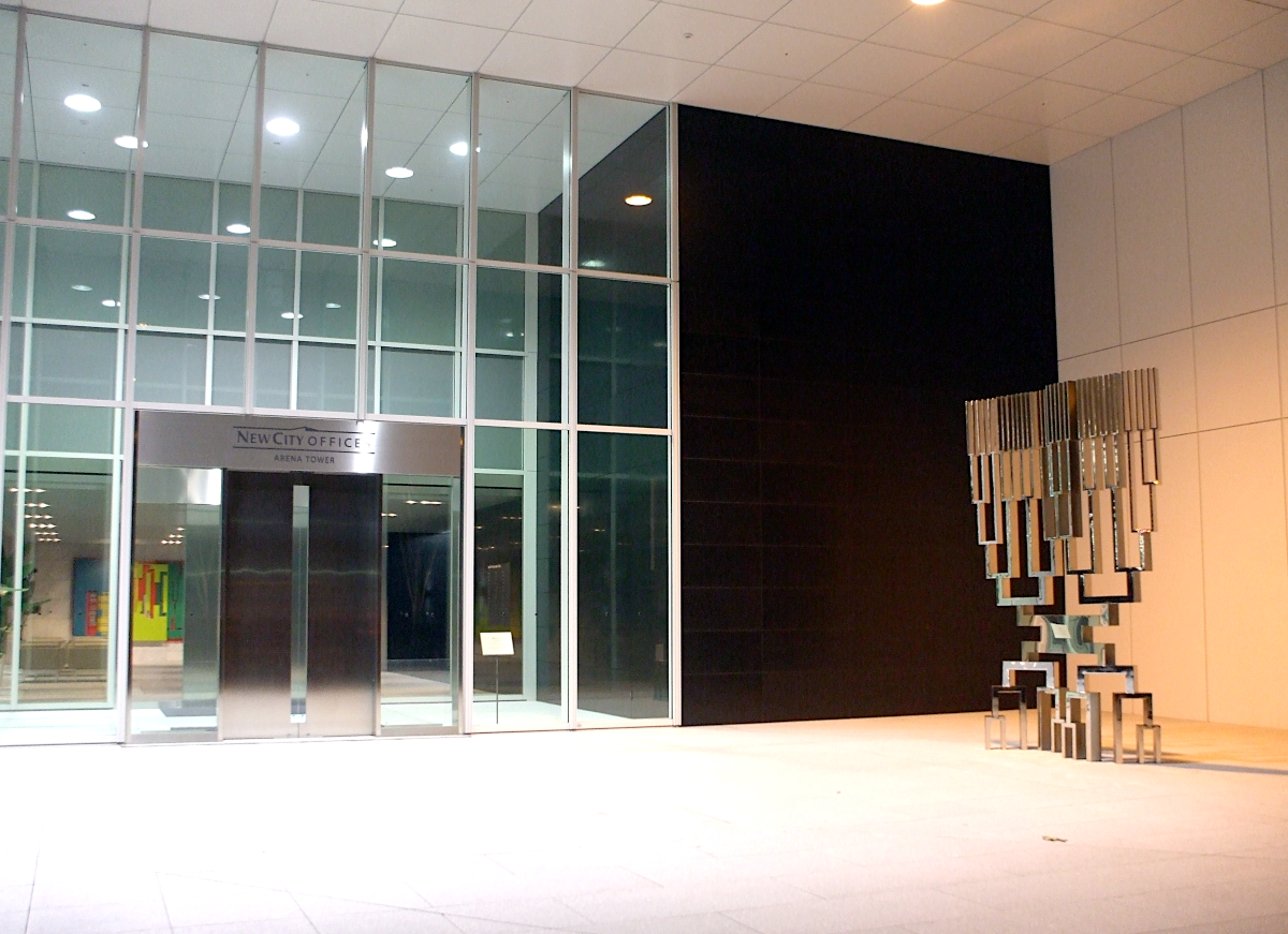このニューシティアリーナタワーの玄関口にモニュメントを採用いただきました。