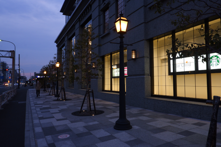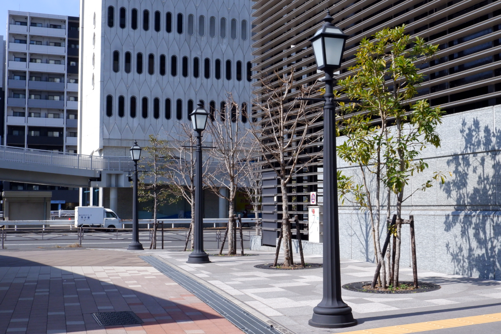 神奈川県横浜市 JR桜木町ビルのガス燈をイメージした洋風街路灯(クラシックな4角形の照明):納入事例写真