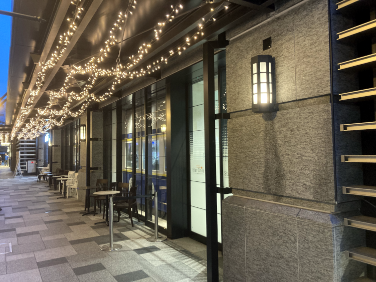 ビル内外のあかりは柔らかく暖かみのある光で統一され、居心地の良い魅力的な空間を演出しています。