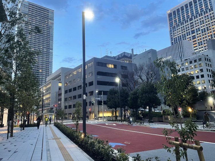 そして、この再開発の一環として整備された道路に弊社の車道照明が採用されました。これにより、夜間の視認性と美観が向上し、歩行者の安全と快適性を高めることができました。